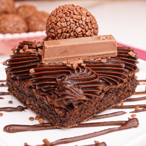 Massa brownie recheado com brigadeiro ao leite , decorado com brigadeiro e kit kat.