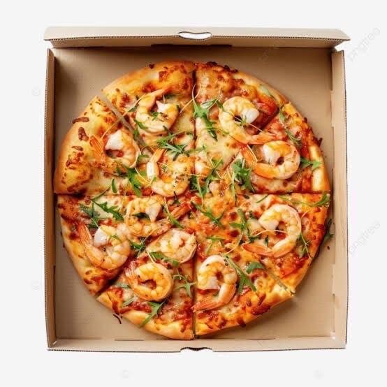 Massa Artesanal, Molho de Tomate, Queijo Mussarela , Filé de Camarão e Orégano
