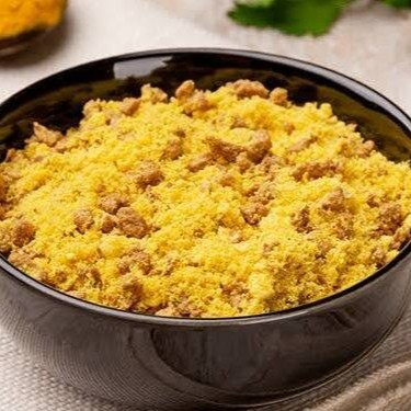 Cupim, feijão, arroz, espaguete, vinagrete e farofa.