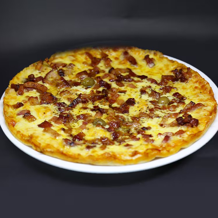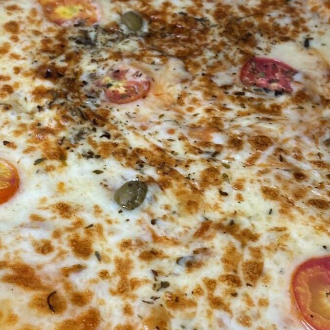 (Escolha o sabor da pizza: Calabresa, napolitano, mussarela, milho, cartola e presunto.)