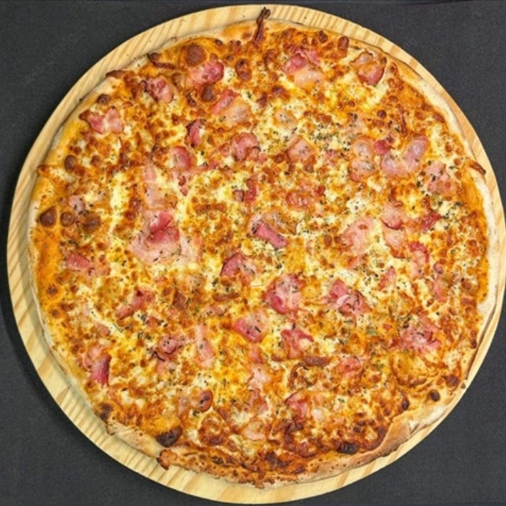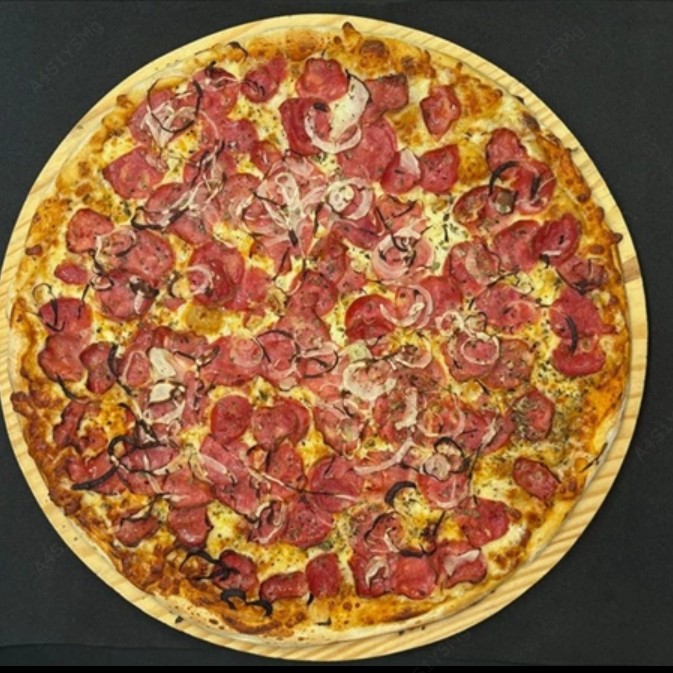 A mais pedida da casa, na 99food. Molho da casa, queijo mussarela, calabresa, cebola, cream cheese maçaricado e orégano.