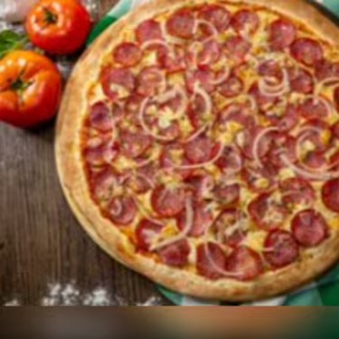 Molho da casa, mussarela importada, calabresa, Catupiry, cebola e orégano