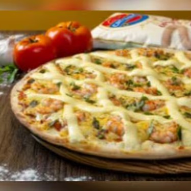 Sedutora e irresistível, a pizza 'Camarão', uma das mais pedidas, se destaca por sua generosa cobertura. Um esplêndido molho especial serve de base para a suculenta mussarela derretida, que abraça cuidadosamente camarões meticulosamente selecionados, proporcionando um sabor marítimo autêntico e inesquecível. O toque final fica por conta do cremoso e inconfundível Catupiry, que acentua a experiência gastronômica. Acompanha uma massa fina e crocante, cuidadosamente preparada para equilibrar e complementar os sabores vibrantes desta deliciosa pizza.