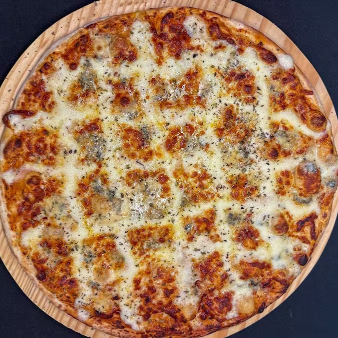 Mussarela, Catupiry, gorgonzola e orégano.