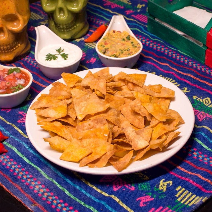 Deliciosos nachos de trigo crocantes feitos artesanalmente.