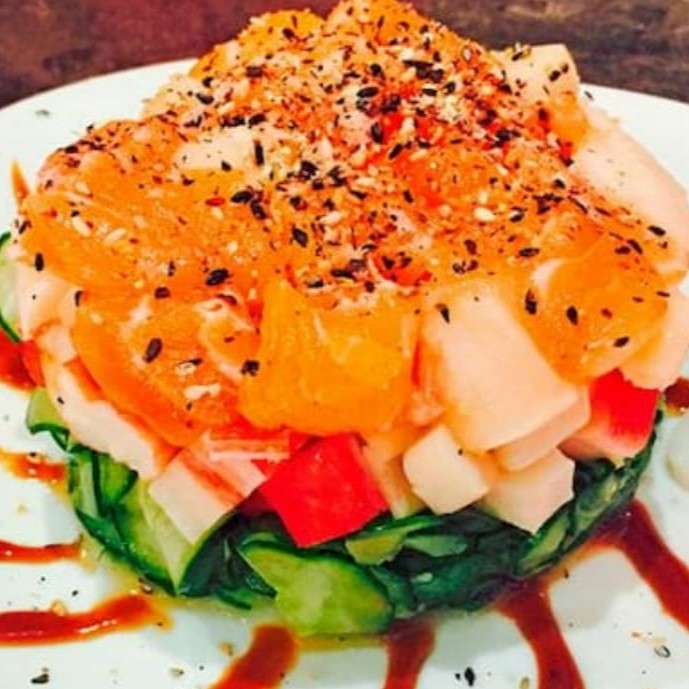 Conversas de pepino,salmão, kani ,camarão, e gergelim