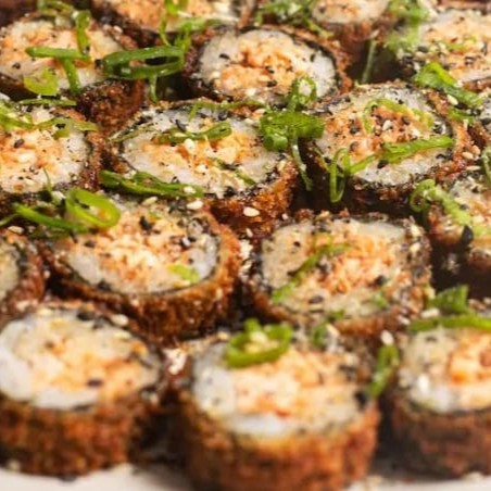 20 peças de enrolado de arroz empanado,tilápia,cream cheese,cebolinho e gergelim.(20 peças já no clone)