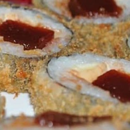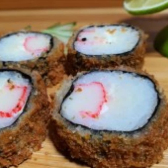Enrolado de arroz empanado,kani,cream chesse,cebolinho e gergelim