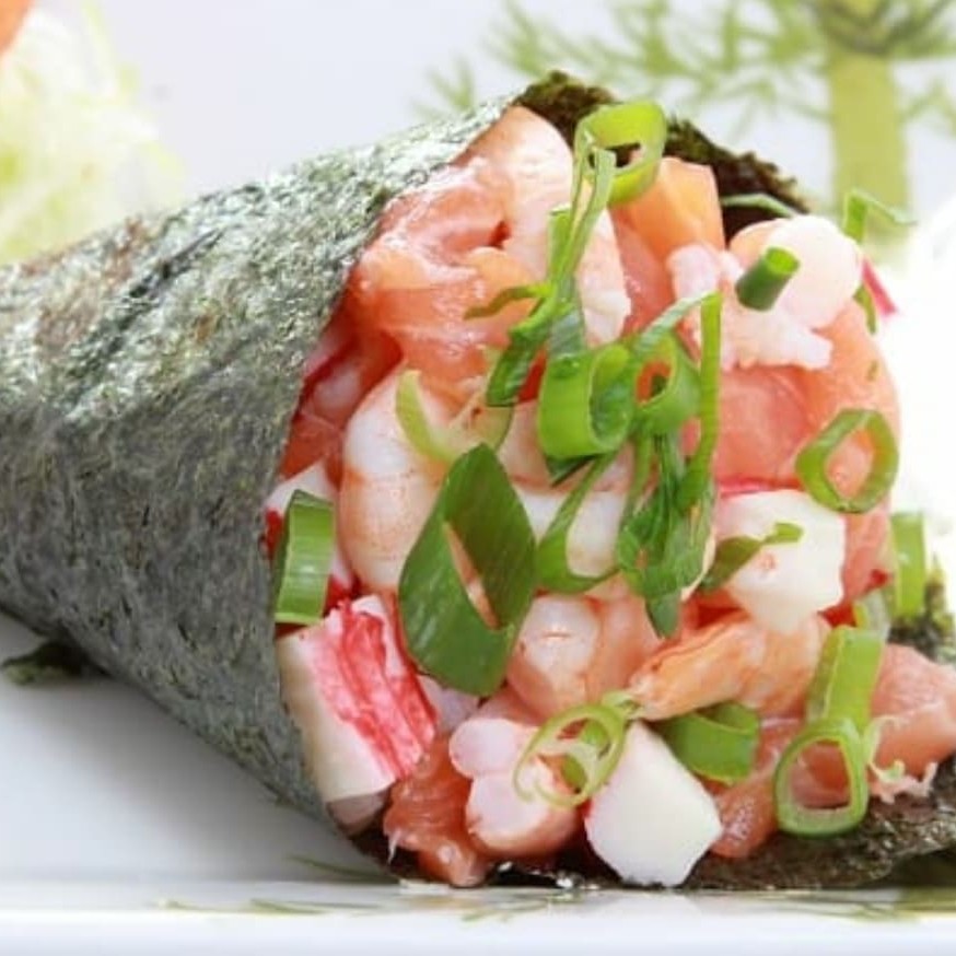 Alga,Kani Empanado,Arroz,Cream Cheese,Cebolinho E Gergelim.(2 temaki já no clone)