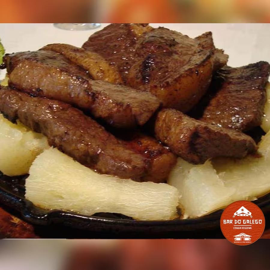 Arroz soltinho, macarrão no ponto certo e o tradicional feijão de corda – sequinho, temperado e cheio de sabor. Acompanha duas porções de carne à sua escolha, pra montar o prato do jeitinho que você gosta. Refeição completa, com gostinho de comida caseira e o sabor inconfundível do Bar do Galego!