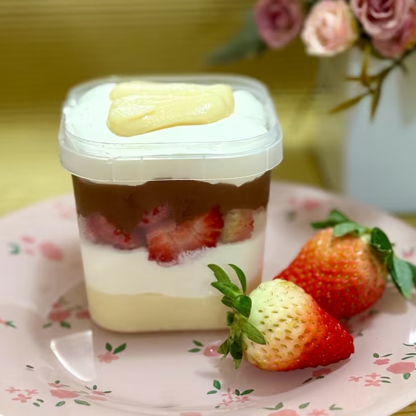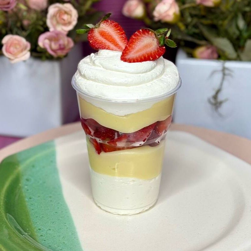 Uma explosão de sabor em cada colher! Camadas cremosas de mousse e creme de leite Ninho, recheadas com morangos frescos e suculentos, finalizadas com uma generosa cobertura de Nutella pura. Tudo isso em uma combinação que derrete na boca e conquista corações!