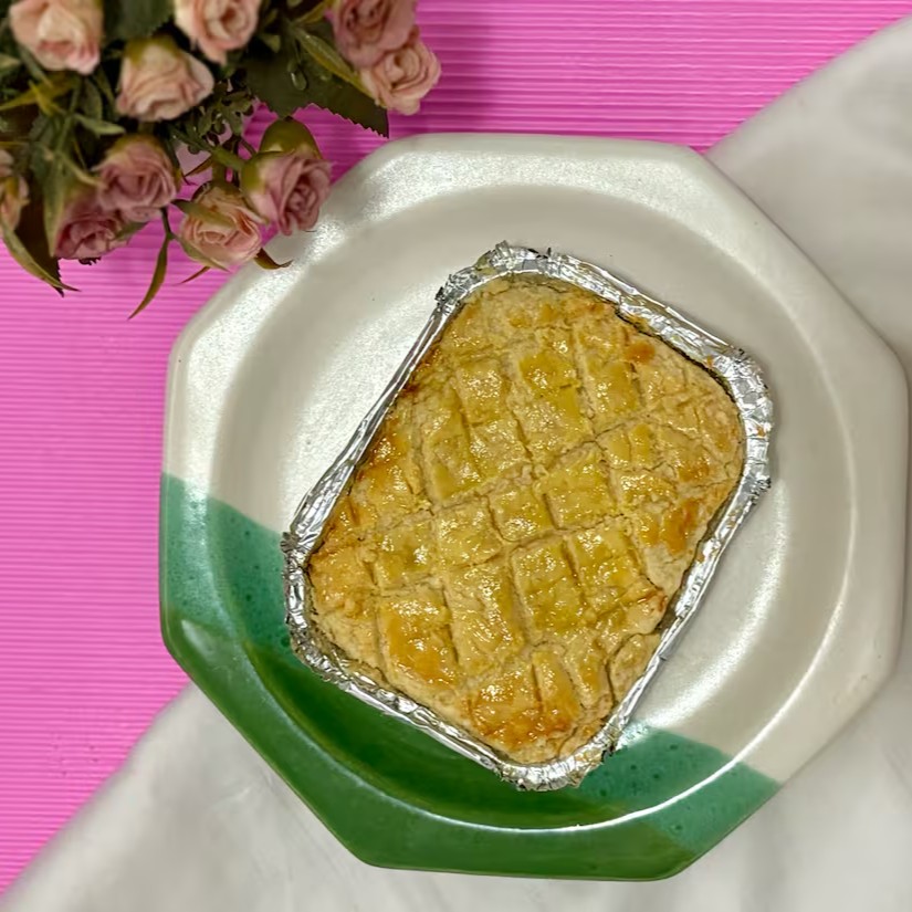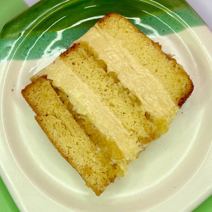 Massa de Ninho com recheio cremoso de coco e camadas generosas de geleia de abacaxi artesanal