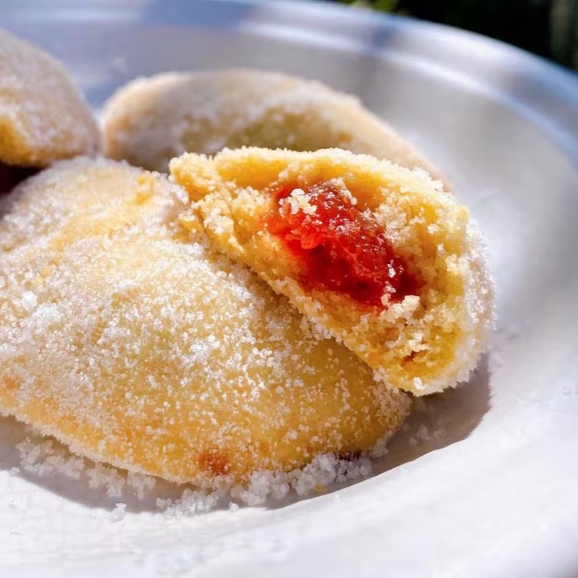 Doce com massa que leva queijo parmesão ralado + recheio de goiabada polvilhado com açúcar refinado. 10 unidades