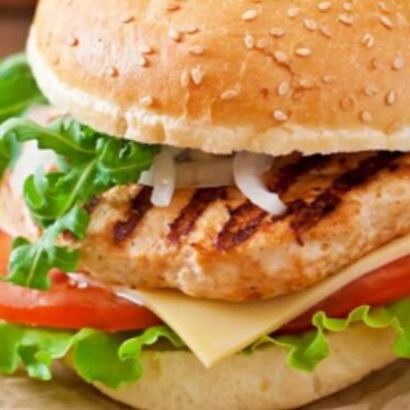 Pão bola, File de frango, queijo prato, presunto, salada e molho caseiro.