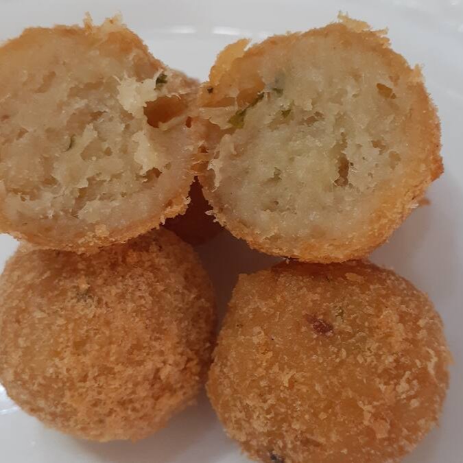 12 unidades de um Delicioso bol de Bacalhau, frito na hora. Uma delícia pro seu lanche.