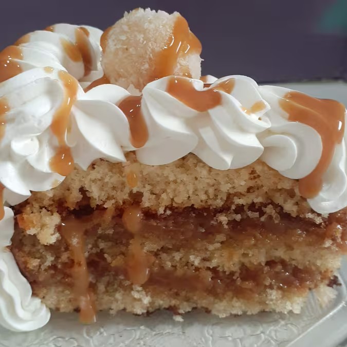 Massa de baunilha 2 camadas de Doce de leite cobertura de Chantininho