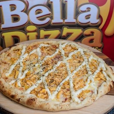 DELICIOSA PIZZA DE FRANGO SABOROSO, QUE LEVA AINDA MUSSARELA ARGENTINA E REQUEJÃO PREMIUM, ALÉM DE SECREDOS ESPECIAIS DA PIZZARIA.