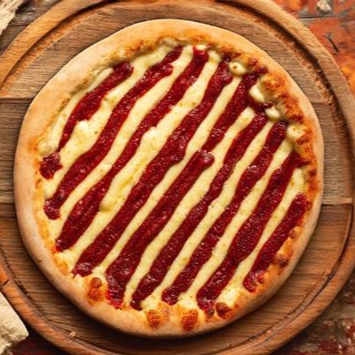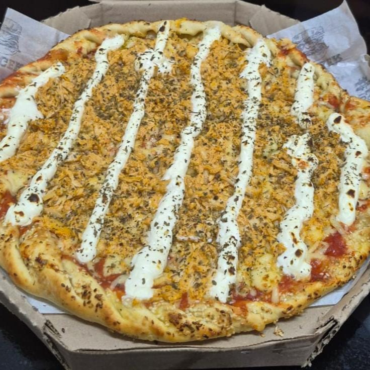 DELICIOSA PIZZA GRANDE, COM MUSSARELA, CREAM CHEESE, MOLHO E ORÉGANO.