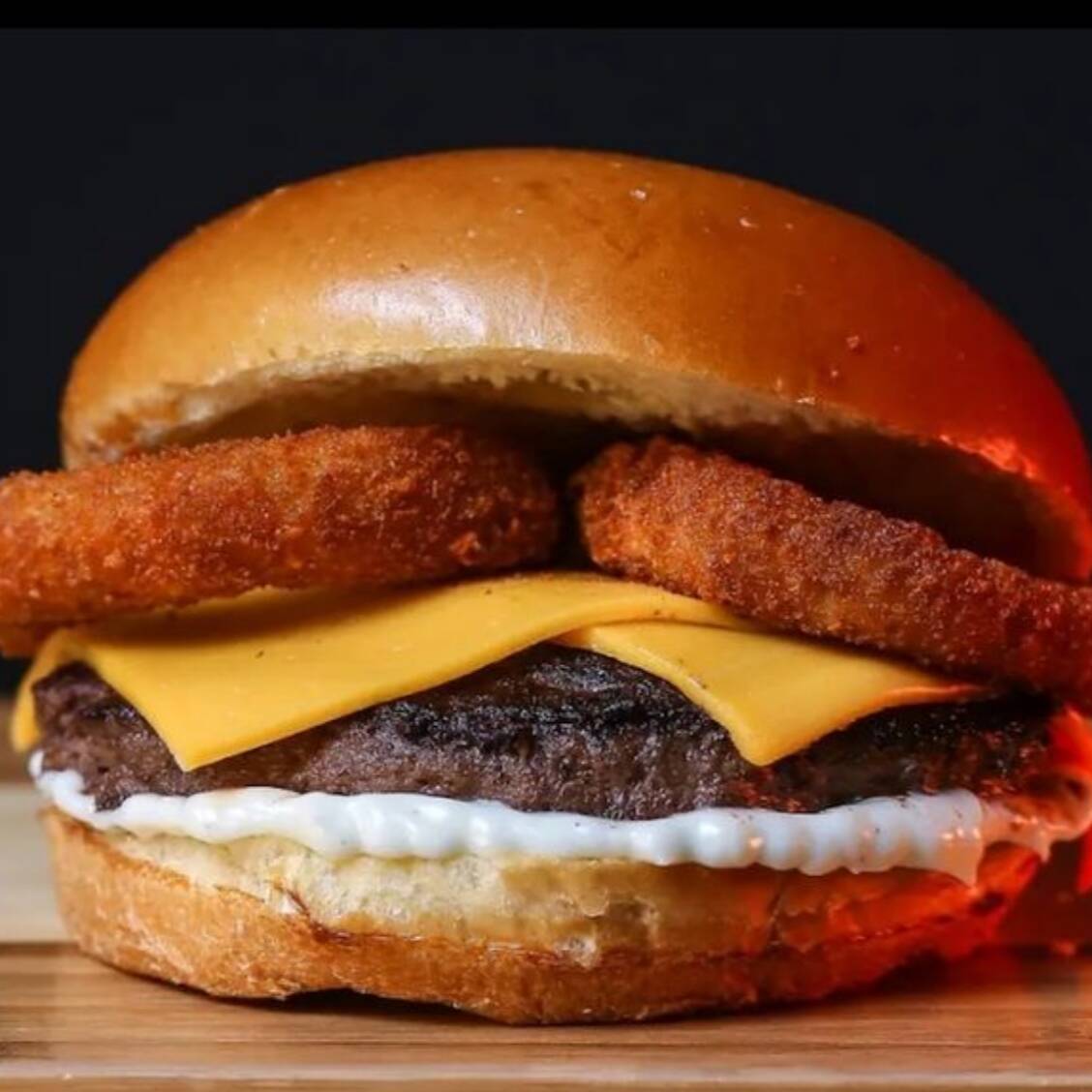 Delicie-se com nosso Pão Brioche macio, recheado com 150g de carne artesanal suculenta, duas fatias de cheddar derretido, crocantes Onion Rings e um molho especial que vai surpreender seu paladar. Um verdadeiro espetáculo de sabores!