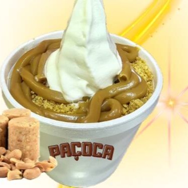 Sorvete servido no pote de 300ml, coberto por doce de leite e nossa saborosa paçoca.