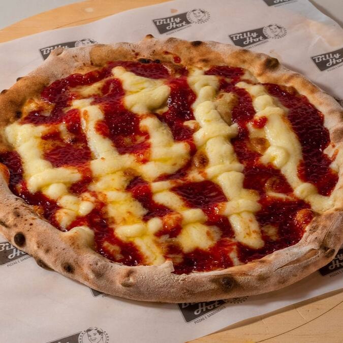 Pizza estilo Napolitana 27cm de diametro feita com farinha italiana 00, Goiabada Cascão, mussarela e açúcar de confeitero.