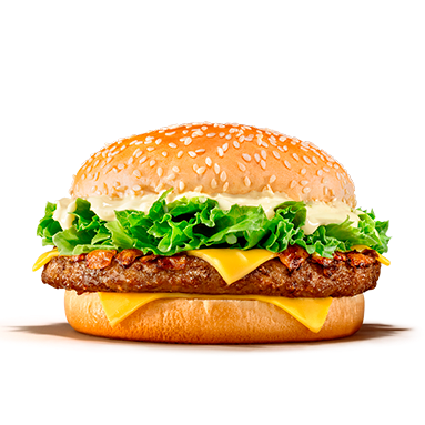 Clássico que todo mundo gosta: dois hambúrgueres bovinos com queijo num pão quentinho.