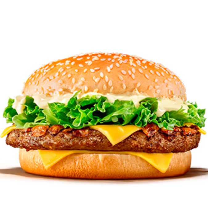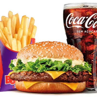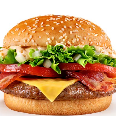 Este sanduíche de responsa foi desenvolvido para os amantes de Bacon. A deliciosa maionese sabor bacon, alface, tomate e cebola fresquinhos mais tiras de bacon crocante combinados com hambúrguer bovino e pão com gergelim, acompanhado com uma batata palito média e uma bebida bem refrescante.