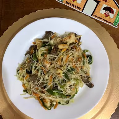 O mais pedido da casa: Macarrão bifum acompanhado com carne e frango desfiados ao shoyu ou curry. Podendo escolher entre adicionar legumes, especial de camarão ou, ainda, a nossa versão vegetariana.
