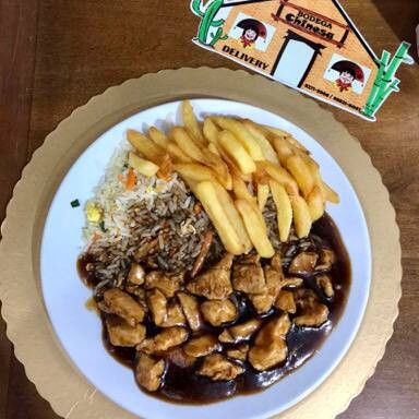 Carne e frango ao molho shoyu, acompanhado com arroz chinês e batata frita. Podendo escolher entre adicionar legumes, especial de camarão ou, ainda, a nossa versão vegetariana.