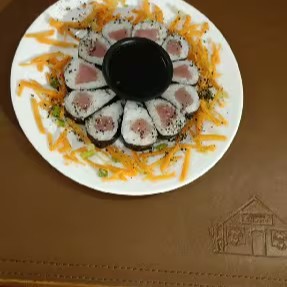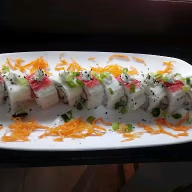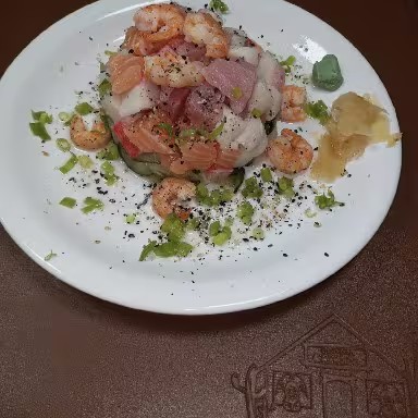 Composto por: salmão, peixe branco, atum, kani, camarão, salada de pepino japonês e gergelim.