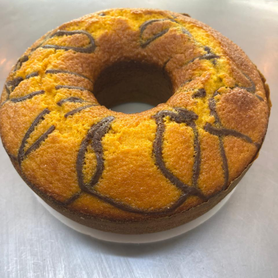 Bolo de Trigo, com a massa de creme de leite, adicionado Chocolate em pó, não usamos conservantes, fabricação diaria. Serve de 10 a 12 fatias.