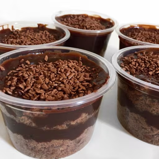 Bolinho no pote de chocolate com uma massa de chocolate 50% cacau e camadas de chocolate irresistível. Sempre com um gostinho de quero mais.
