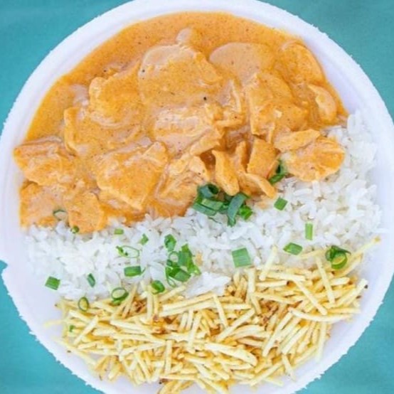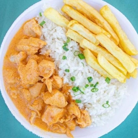 Um delicioso estrogonofe de frango super cremoso, com aquele gostinho caseiro. Acompanhado de um arroz bem soltinho e batata palha crocante