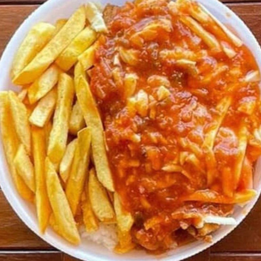 Frango em temperadinho, com cebolas na chapa. ( opcional) caso não queira só nos informar da observação sem cebola)Acompanhado de: Feijão mulatinho, arroz branquinho, vinagrete, farofinha e batatas frita
