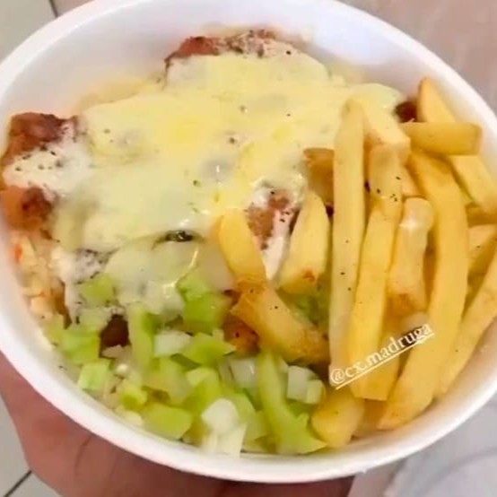 Nossa Marmita acompanha : Arroz branquinho , batata palha crocante e o nosso delicioso strogonoff de frango cremoso.