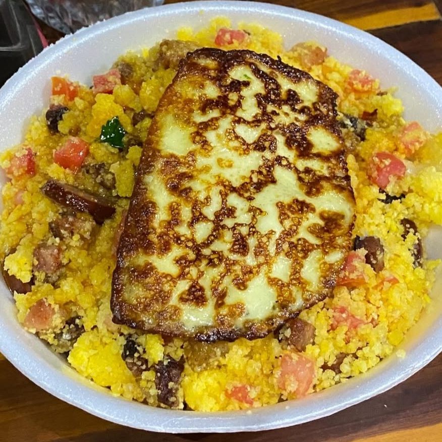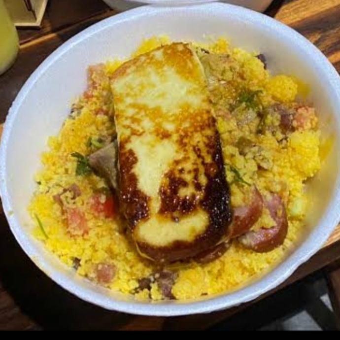 Cuscuz Com Charque ,calabresa E Coalho Derretido 2 Pessoas