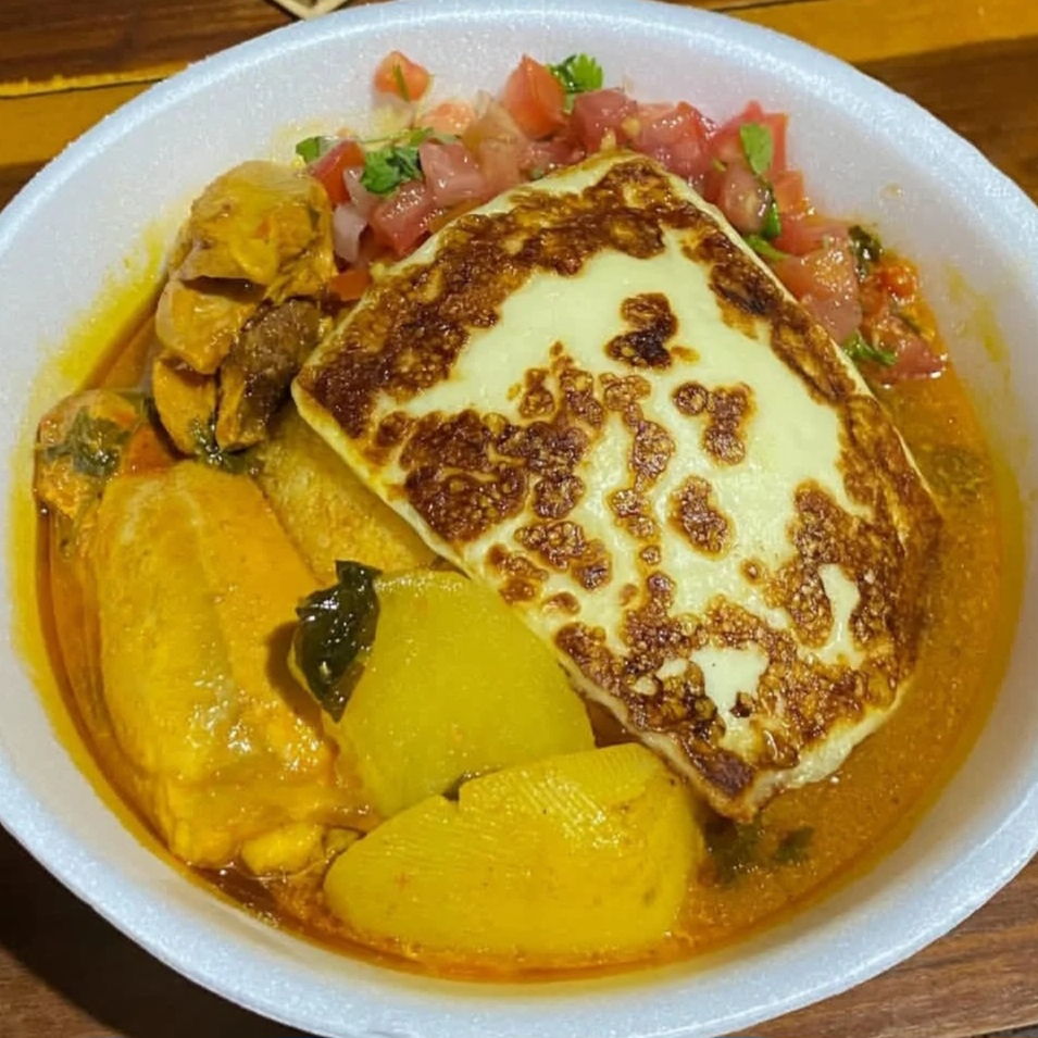 Cuscuz fofinho ,com galinha guisada, batata inglesa e coalho assado/2 pessoas.Marmita de 1kilo