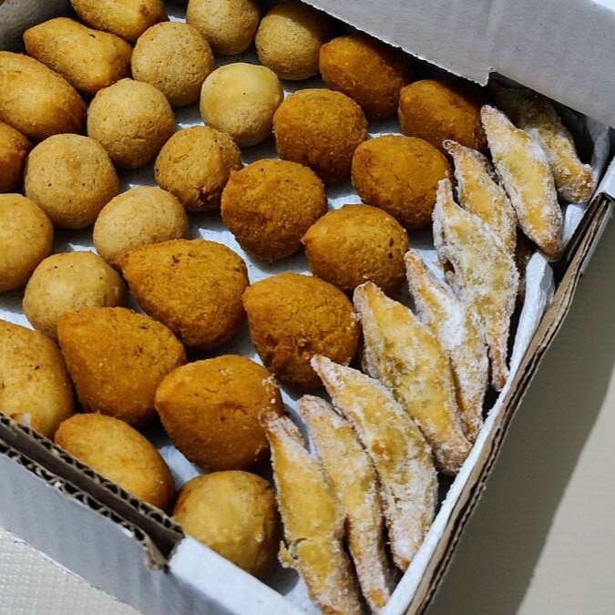 Salgados fritos na hora, chegam sequinhos e crocantes ate você.