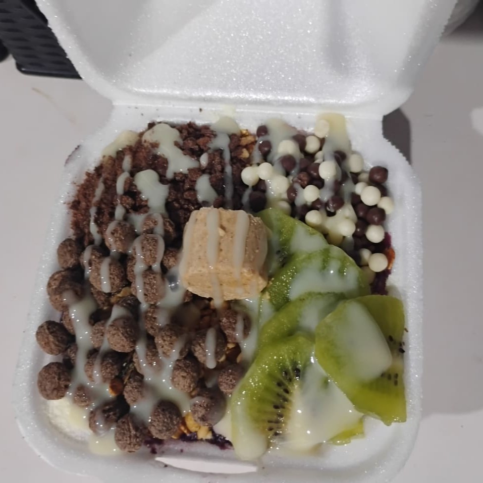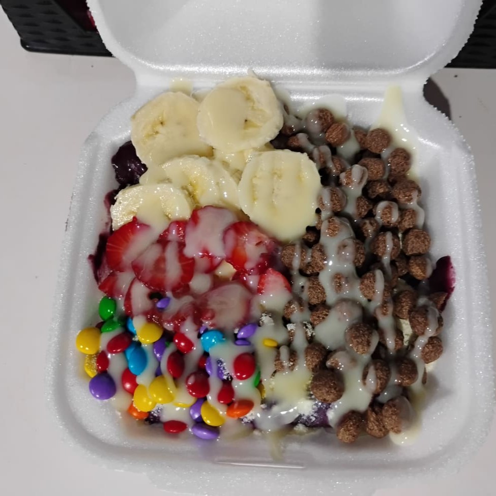 cereal de chocolate sucrillhos paçoca fruta banana leite em pó e granola e condesado