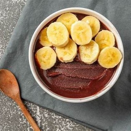 Pote com 200 ml , açai premium , banana e Leite Moça