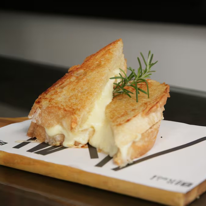 Clássico sand de queijo minas com pão brioche. Acompanha doce de leite.