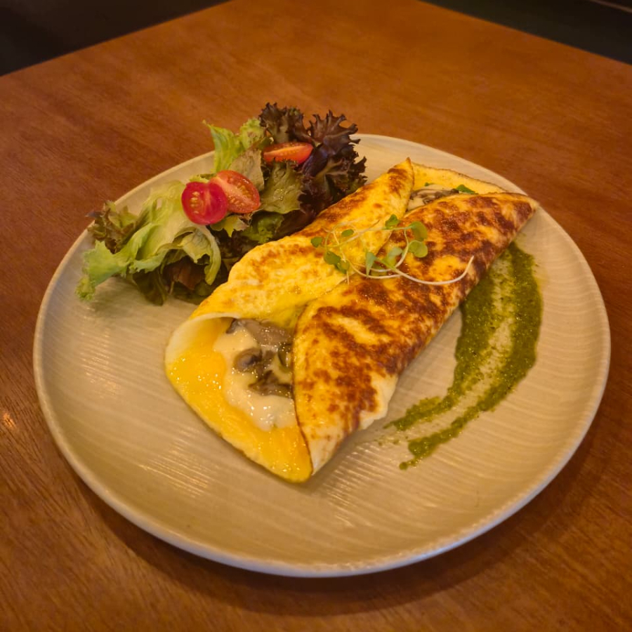 Ovos cremosos, queijo minas, mix de cogumelos refogados, finalizado com azeite de trufas.