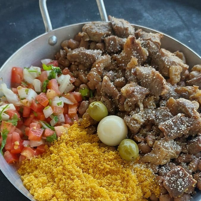 Arrumadinho carne de sol. feijão verde, carne de sol e vinagrete . Opcional de arroz Serve no Máximo 2 Pessoas (Depende da fome)