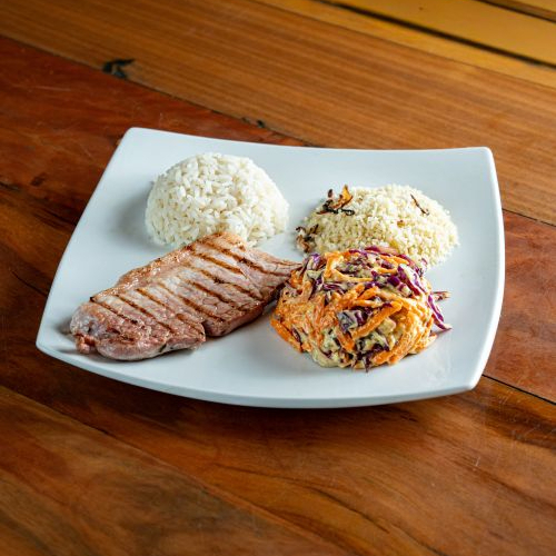 Picanha suina, 3 acompanhamentos e 1 molho