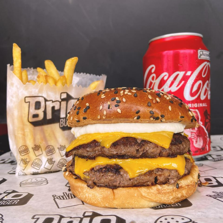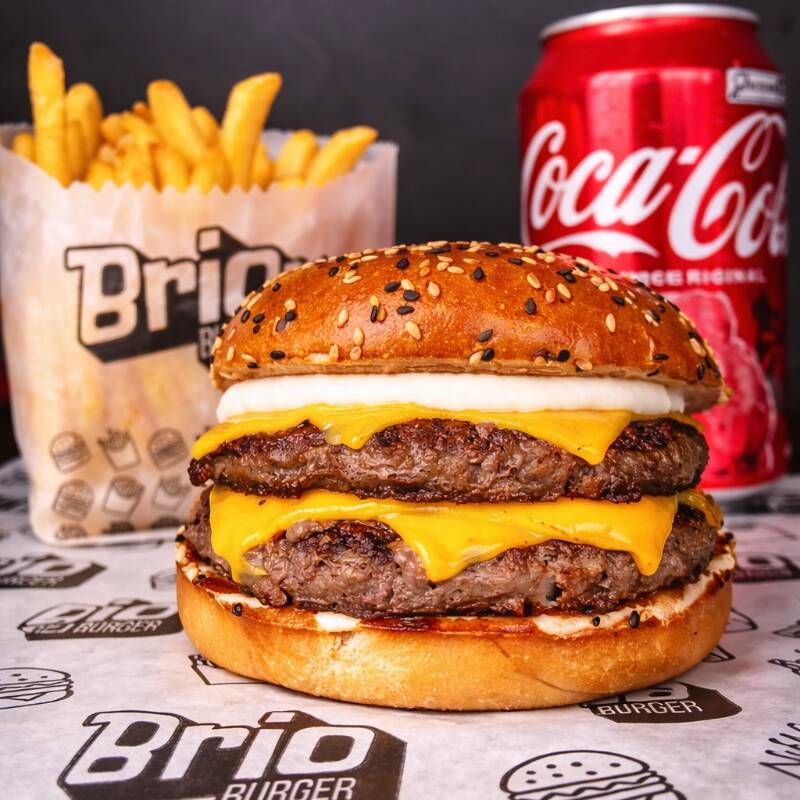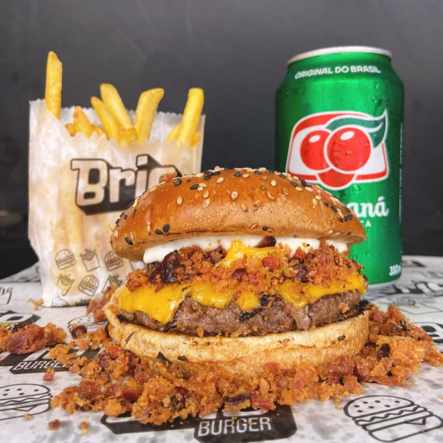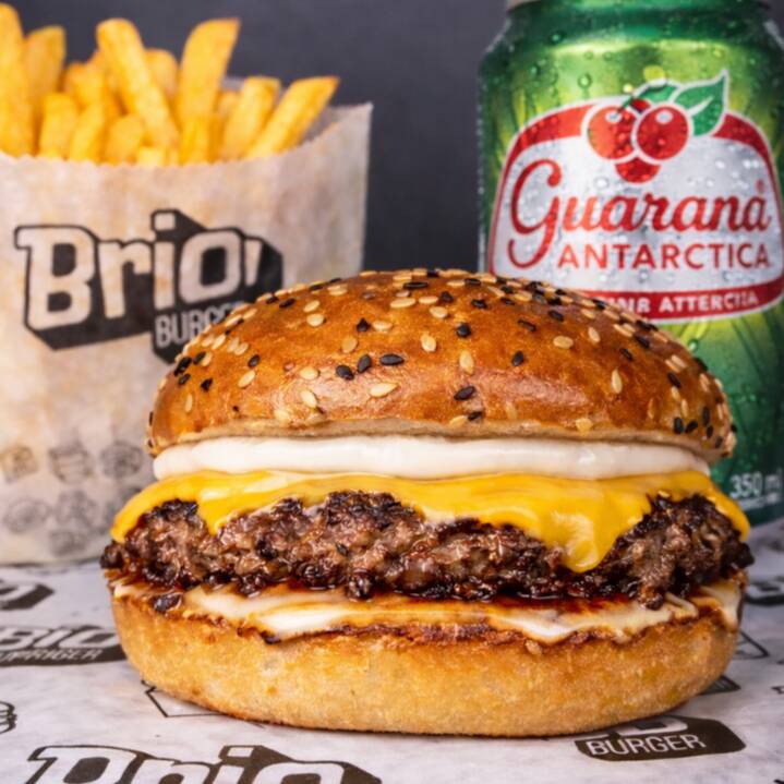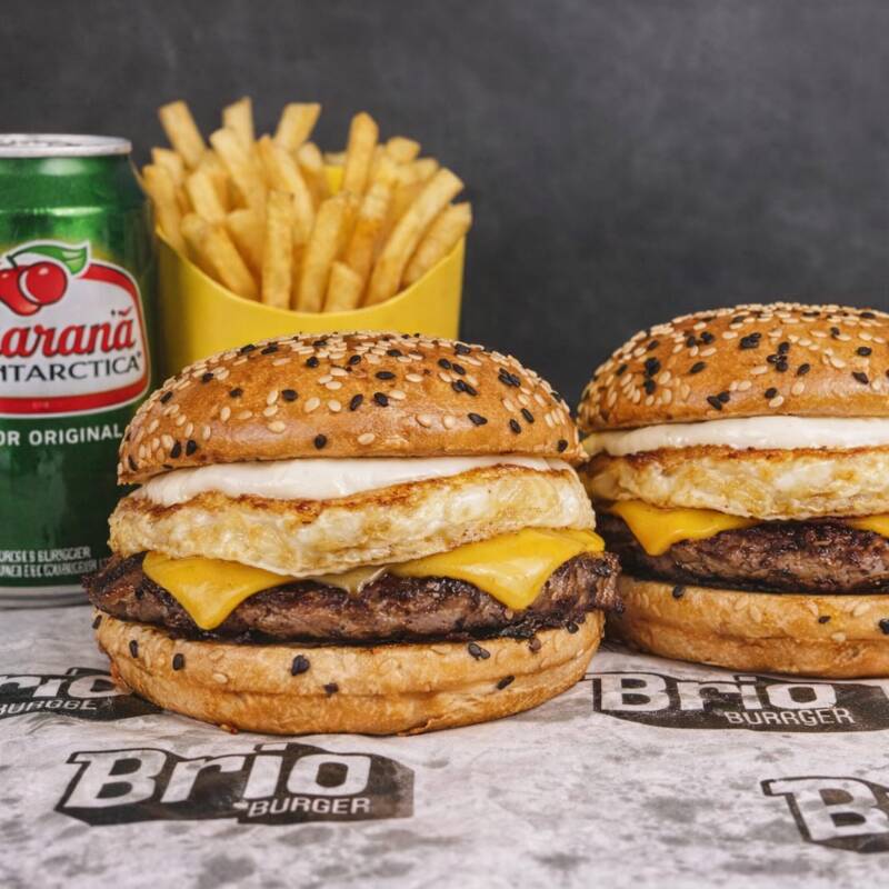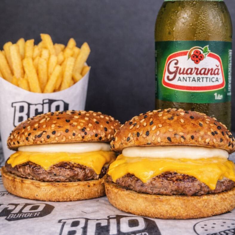 🍔2 Brio Burger – carne smash fininha e suculenta, queijo derretido 🍟1 Batatas fritas – douradas e crocantes 🥤 1 Guaraná Antarctica 1 Litro – bem gelado