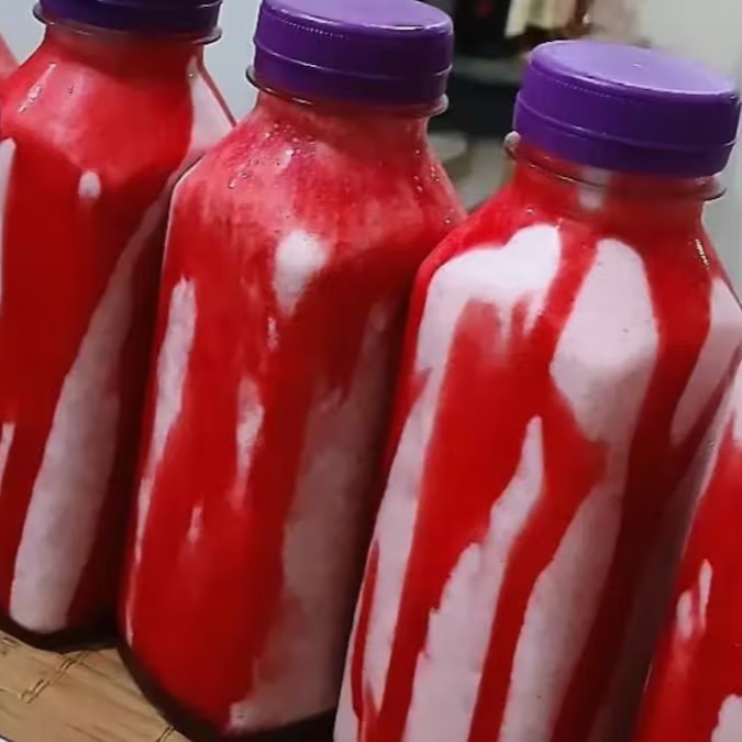 Cajá, leite em pó e gelo batidos... Servido na garrafinha!