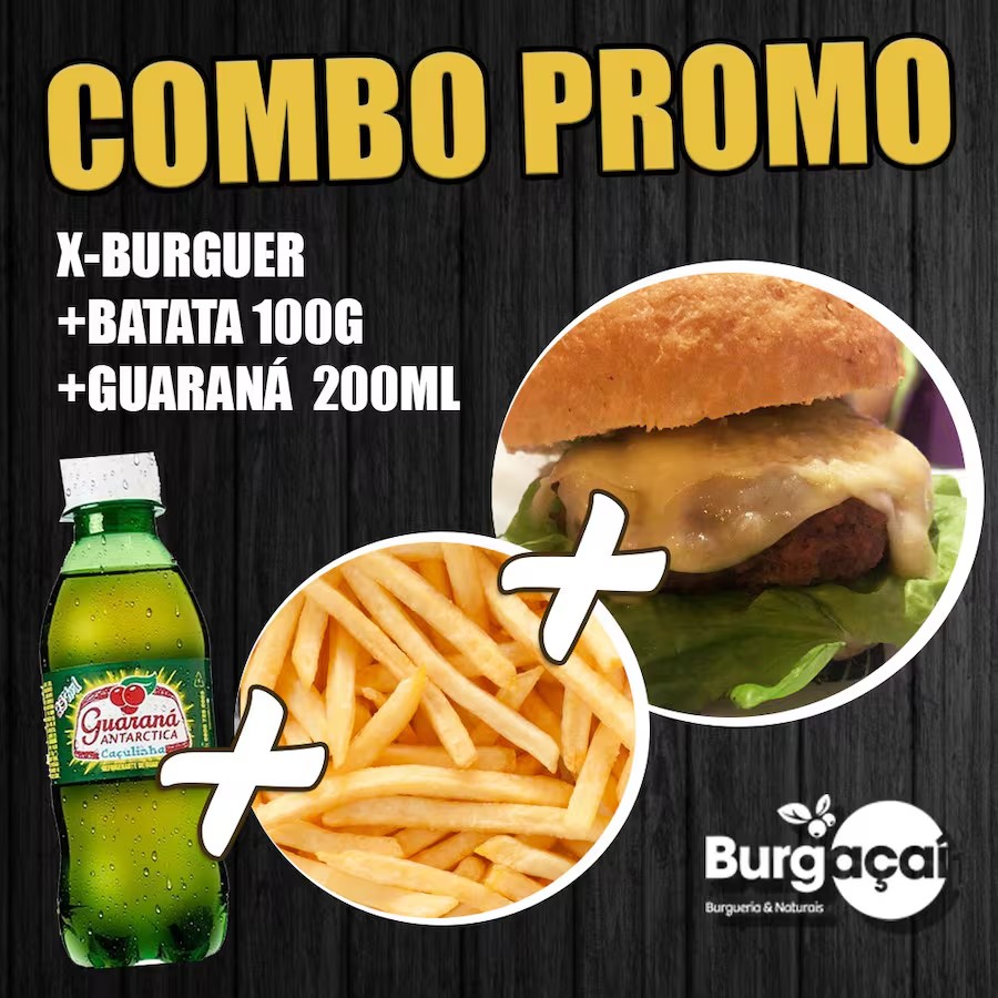 Combo X Burguer + Batata P + Guaraná 200ml Grátis