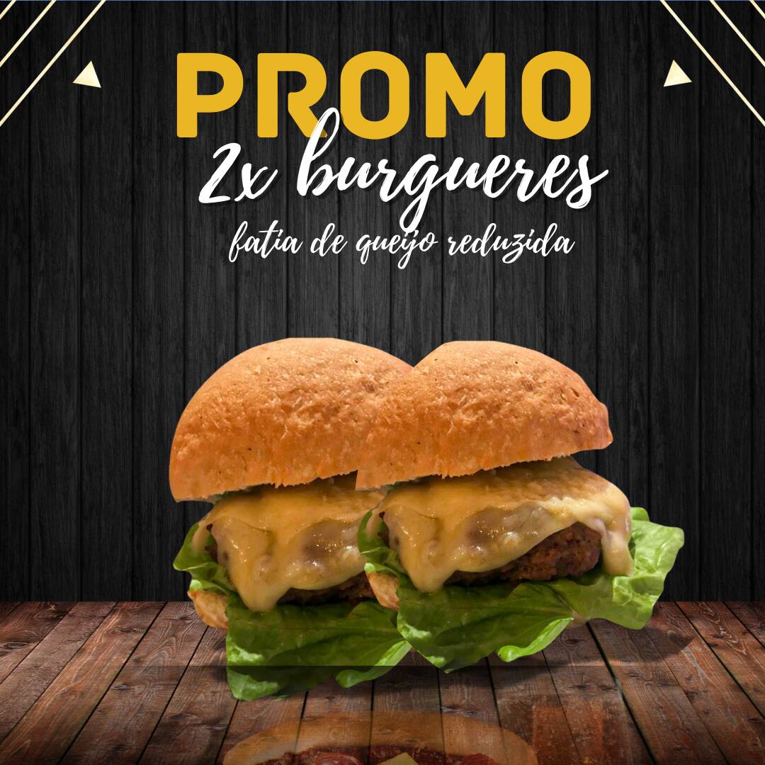 São 2 x burgueres promocionais (menor fatia de queijo) com 100g de carne bovina.