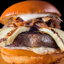 Pão brioche, carne bovina de 80g, queijo cheddar cebola caramelizada, alface, tomate e maionese Burger Grill.
