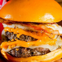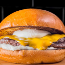 Duas carnes de Carne de Sol 140g, queijo, bacon, ovo, cheddar, alface, tomate, cebola caramelizada e molho especial num pão brioche amanteigado.